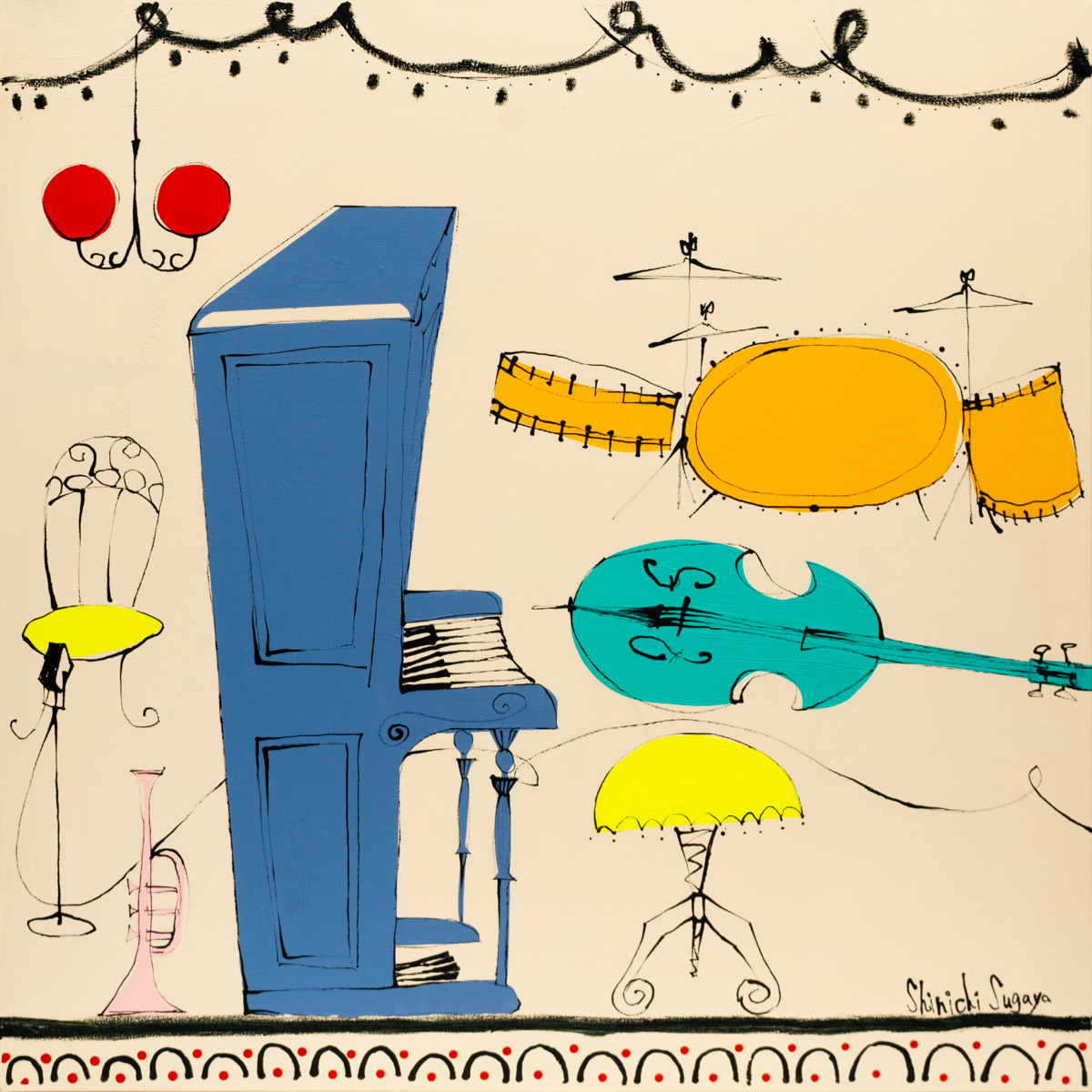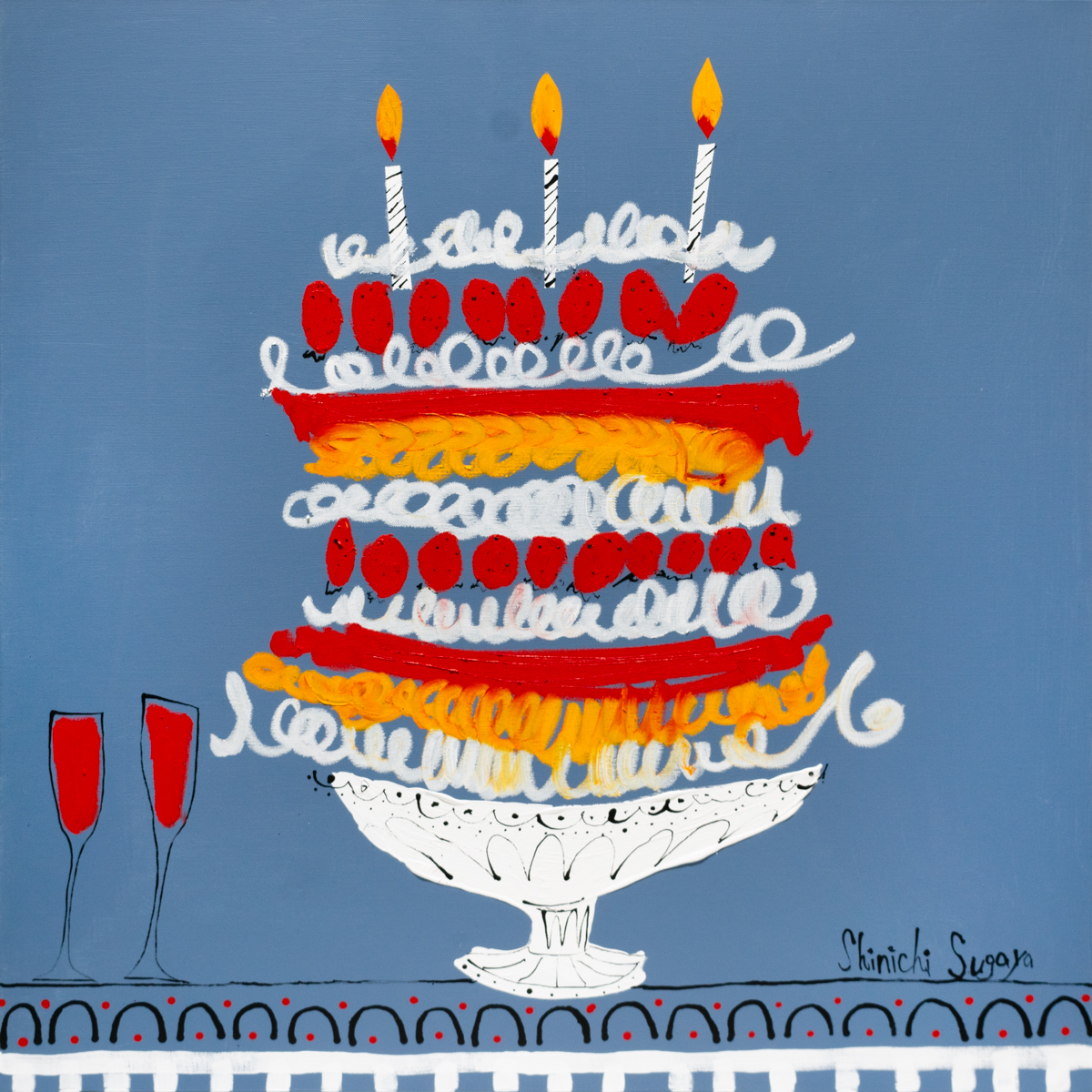 Shinichi Sugaya is a graphic artist known for designing music covers of Japanese rock bands “THE CRO-MAGNONS” and “OKAMOTO’s”. Paintings, sculptures and photography adopted to music visuals are all made by himself that his variety of techniques and expression is a key of his firm reliability by the musicians. At Komiyama Tokyo G, he deepens and discover the further outlook of his creativity.