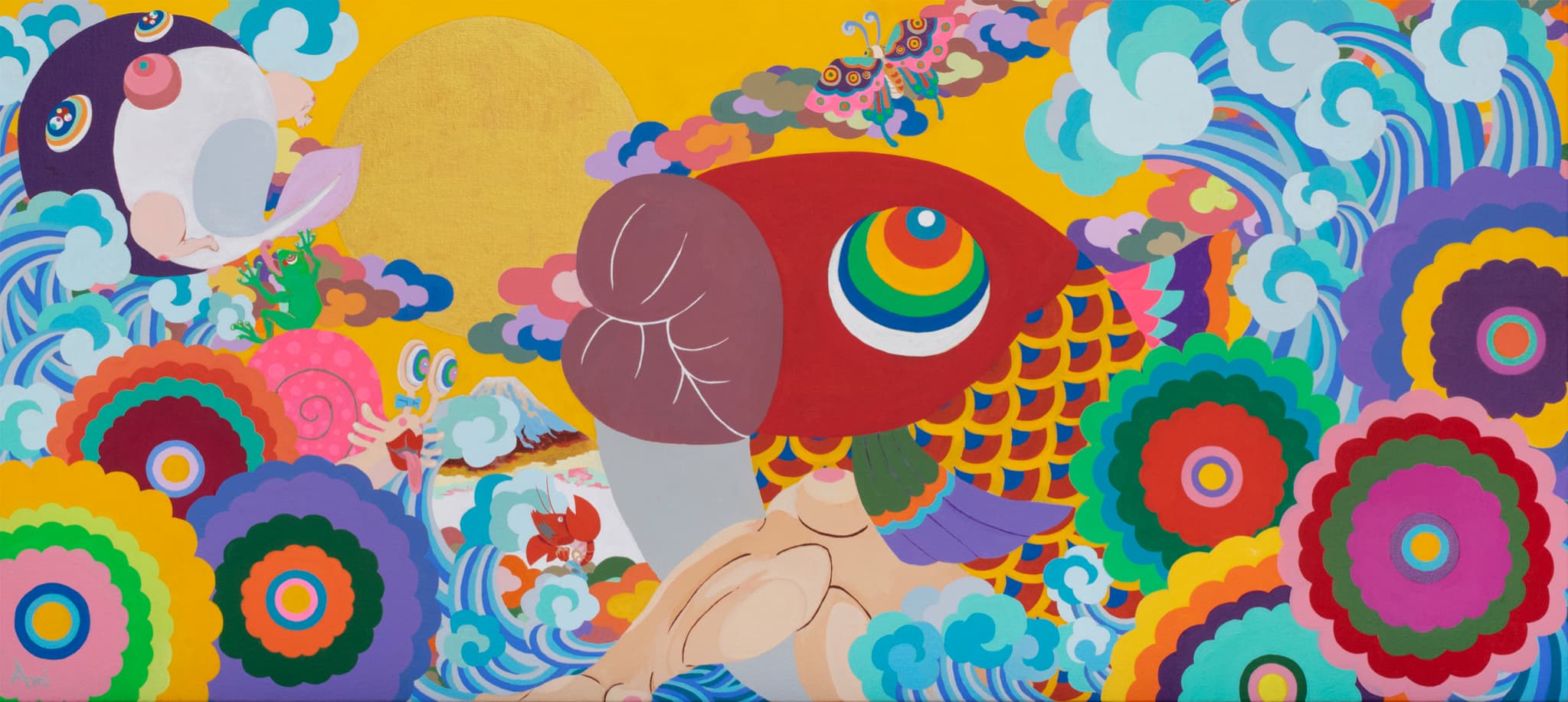 デフォルメした雲や波の形、瞳や鱗に見られる斬新な配色など、随所に作家の想いが込められた愛情豊かな作品群をご高覧ください。