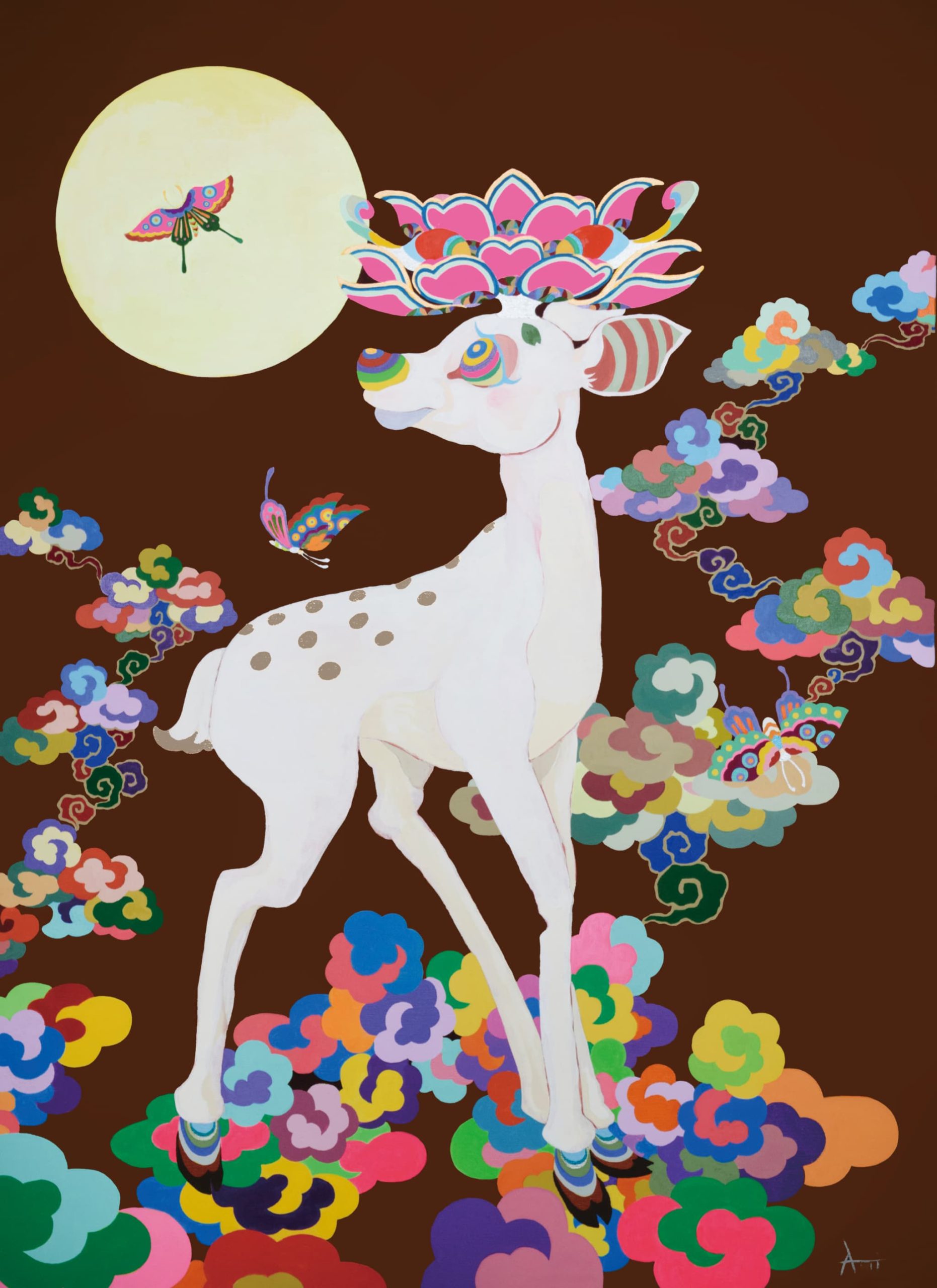 Born in Nagasaki. Made her debut as a cartoonist with manga “Nangoku-Shonen Papuwa-Kun,” which has 6 million of circulation that later evolved into animation. She set off into painting since 2021, leading enormous attention of wide-ranging fans. She assimilates traditional motifs of myth and festivals into works by the vibrancy of character and coloring.