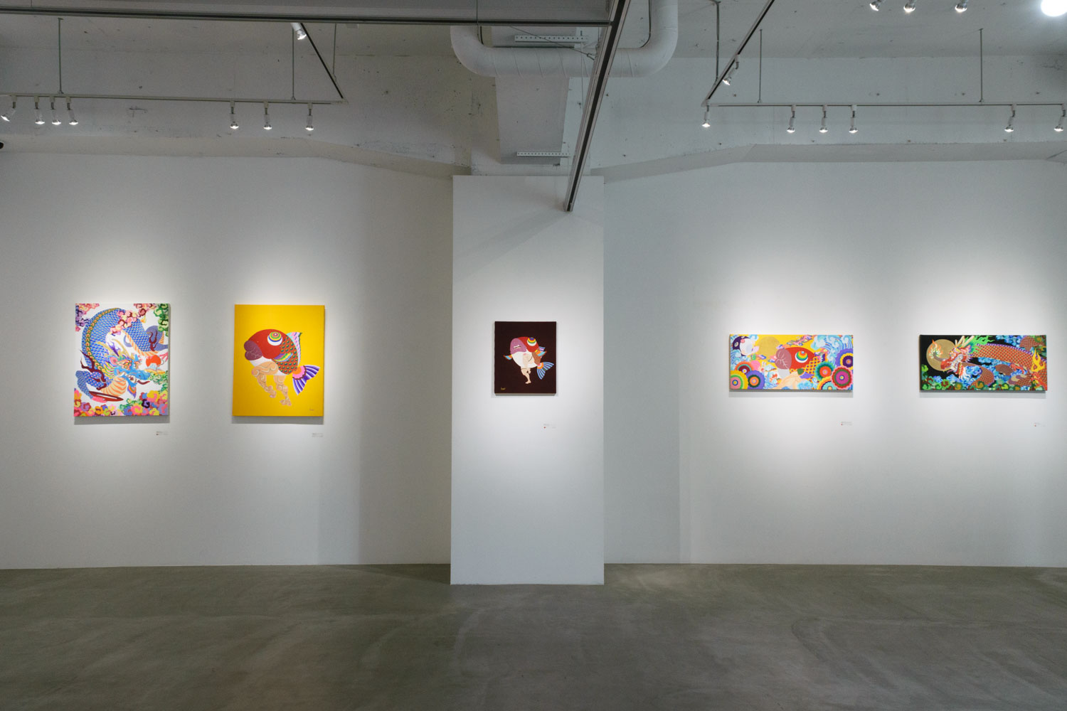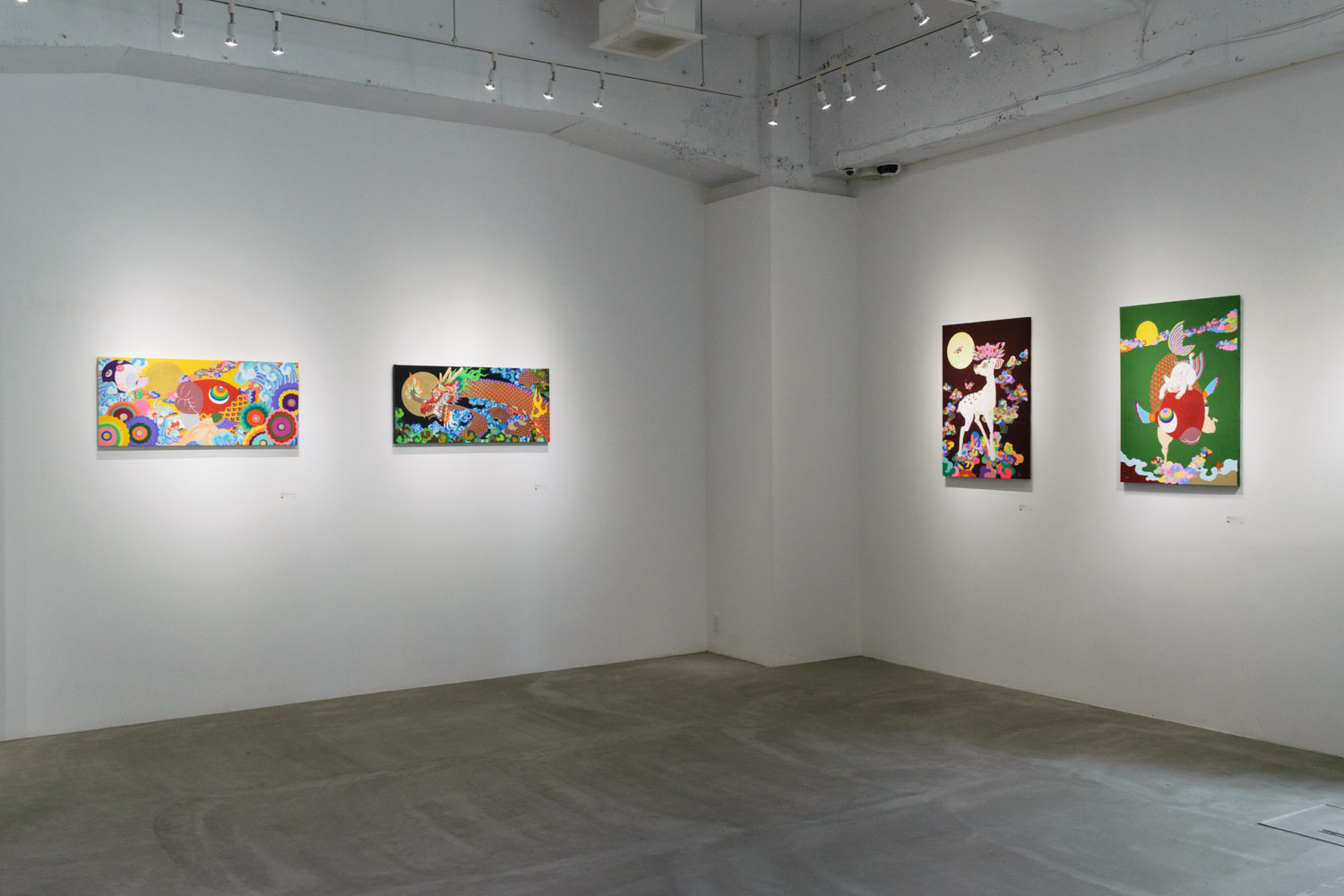 画家として初となる本展では、作家の原点ともいえる南国的色調の作品や、雲海に舞う龍など架空の動物たちが約20点の作品となり、絵巻のように会場を彩ります。